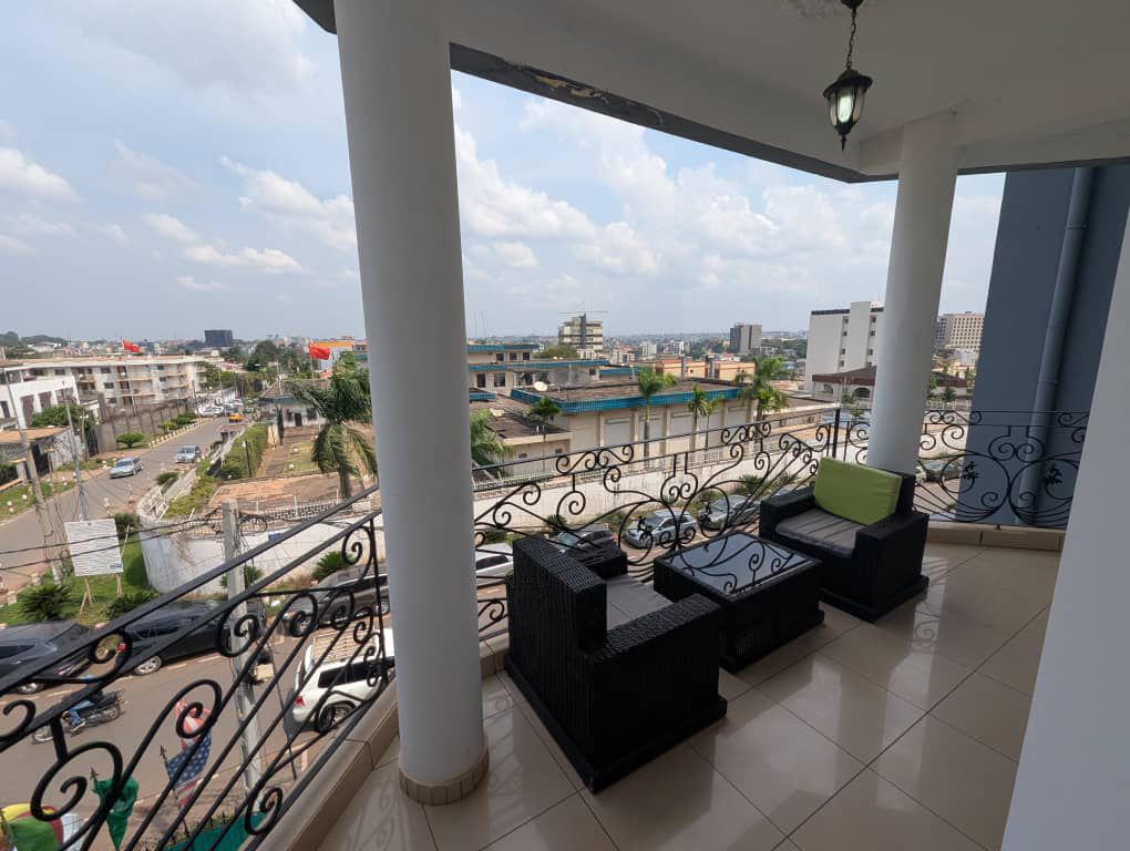 La belle et grande terrasse meublée vous offrent une vue magnifique du quartier Bastos et de la ville de Yaoundé.